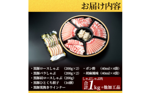 - C-011 霧島高原純粋黒豚特選しゃぶしゃぶ1kgとソーセージ・ひとくち餃子セット【霧島高原ロイヤルポーク】霧島市 しゃぶしゃぶ 黒豚 しゃぶしゃぶ肉 豚 豚肉 しゃぶしゃぶセット 詰め合わせ 霧島市 国産 豚肉 ぎょうざ ウインナー ウィンナー