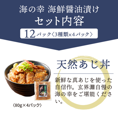 - 【流水解凍だけの簡単調理】まんぷく海鮮醤油漬けセット 各4パック( アジ サバ ブリ 天然 あじ さば ぶり 海鮮丼 流水解凍 お手軽 時短 簡単 人気 冷凍 おいしい 刺身 小分け パック セット 国産 ギフト 長崎県 松浦市 )【B6-046】