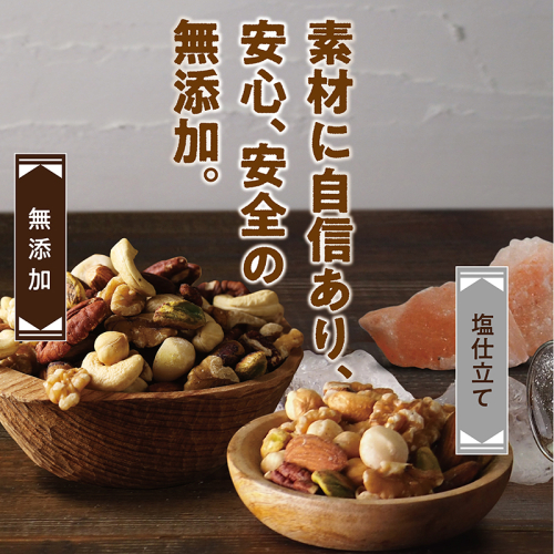 ななつのしあわせミックスナッツから、無添加と塩仕立てをセットでお届けします♪