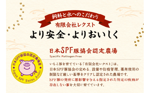 こだわりぬいた飼料と霧島山麓の恩恵を受けたきれいな水を飲んで育った豚肉は、まろやかであっさりした歯切れの良さが特徴です。