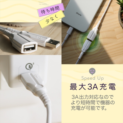 ●コネクタ形状:USB Type-Aオス - USB Type-Aメス●規格:USB2.0規格準拠 最大3A充電対応 ※ご使用になるスマートフォンや充電器などの性能によって、配給される電流値が異なります。※USB PD(Power-Delivery)非対応です。●転送速度:最大480Mbps データ転送対応●ケーブル長:2m●保証期間:1年間
