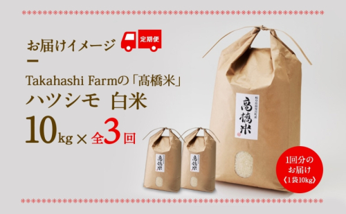 - 定期便 全3回 米 令和7年 ハツシモ 高橋米 10kg 1袋 お米 精米 白米 ごはん ご飯 はつしも あっさり ふっくら ブランド米 10キロ お取り寄せ 産地直送 送料無料 高橋ファーム Takahashi Farm 岐阜県 揖斐川町