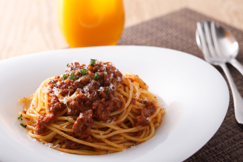 (3)お湯をよく切りお皿に盛り、熱いうちに淡路牛のボロネーゼソースと絡めてお召し上がりください。