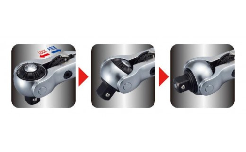 ヘッド部が180°自在に調整可能なラチェットハンドル