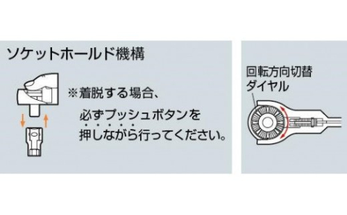 ソケットの着脱が容易で、作業時には外れにくいソケットホールド機構付。