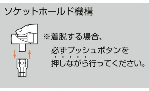 ワンプッシュでソケットの着脱が可能なソケットホールド機構付で、不意なソケット脱落も防止。