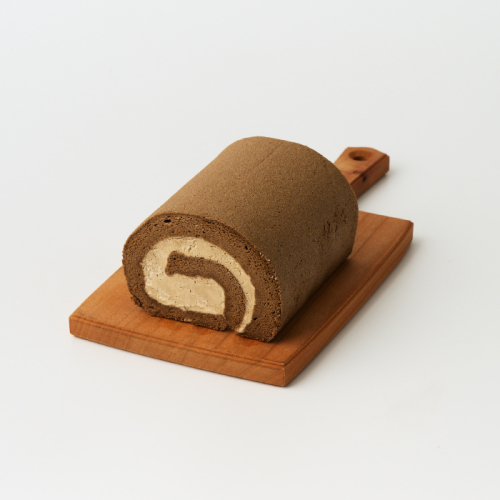 じっくりと煮詰めて香ばしさをギリギリまで追求した自家製焦がしキャラメル。この甘苦い自家製キャラメルでお作りした米粉ロールケーキです。