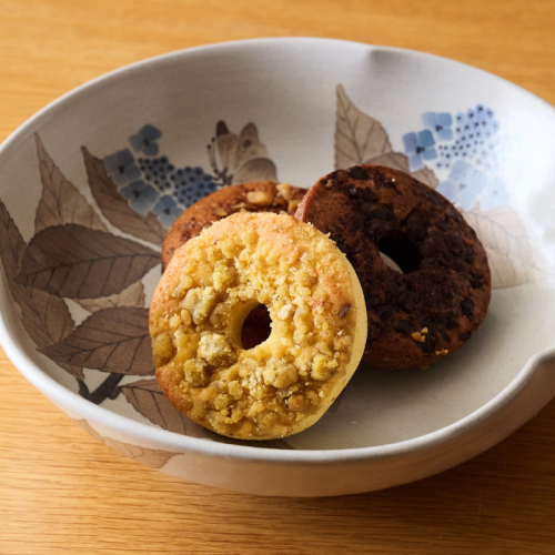 1つに栗2個分を贅沢に使用した米粉の栗ドーナツ。焼きドーナツでヘルシーな味わいです。