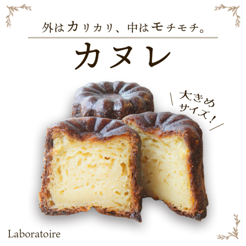 人気のcafeから手作りスイーツをお届け ・フランスボルドー地方の伝統焼菓子。 専用の銅型でじっくり焼き上げ、外はカリッと、中はモチっと。 一度食べたらやみつきまちがいなし!! ・カヌレはフランスの洋菓子。正式名はカヌレ・ド・ボルドーといいます。 外側は深い焼き色と、カリカリとした食感が特徴です。 カラメルソースを焦がして焼き上げたような香ばしい味わい。 まるで濃厚なプリンの様な風味と、ラム酒とカスタードクリームのような香りが広がります。 ・ちょうどいい甘さで、食べごたえのあるサイズです!! 個別包装されているので、家族はもちろん、お友達と一緒にお楽しみいただけます。 原材料 牛乳・グラニュー糖・薄力粉・鶏卵・ラム酒・コーンスターチ・バター・バニラペースト 製造者 Laboratoire その他 冷凍便で発送いたします。 地場産品類型:3 類型該当理由:市内の事業者が原材料の仕入れ・調理・加工・味付け・焼き上げ・梱包までを行うことで、相応の付加価値が生じています。