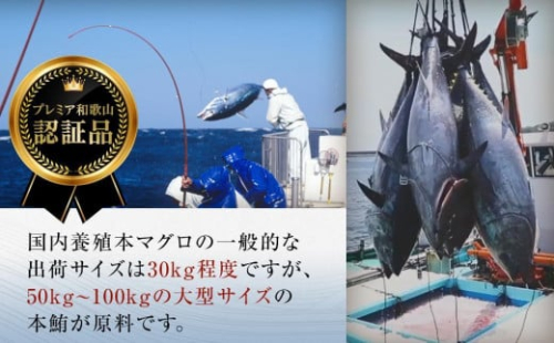 プレミア和歌山認証品です。本鮪養殖発祥の地である串本町で養殖した本鮪です。