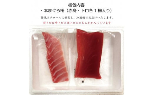 トロと赤身をそれぞれ真空包装しております。(真空袋に赤身・トロと表記)(出荷元):串本食品)