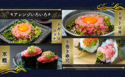 シンプルにそのままでも美味しくお召し上がりいただけますが、海商おすすめのお召し上がり方はアツアツご飯にのせてネギトロ丼!美味しいネギトロを是非一度ご堪能下さい。