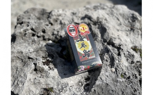 空の青、海の碧に染められたロマンの島「喜界島」から。 ミネラルを含んだ硬質の水が原料の甘い香り、のど超しの良さ、コクを醸し出します。 容器のデザインは、伝統の大島紬模様をベースにしております。