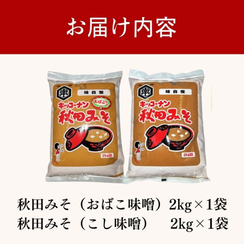 <食べ比べ>秋田みそ(おばこ・こし)各2kg×1袋 合計4kg キッコーナン  1860039 - 秋田県にかほ市