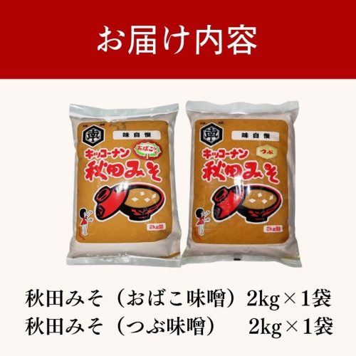 <食べ比べ>秋田みそ(おばこ・つぶ)各2kg×1袋 合計4kg キッコーナン  1860040 - 秋田県にかほ市