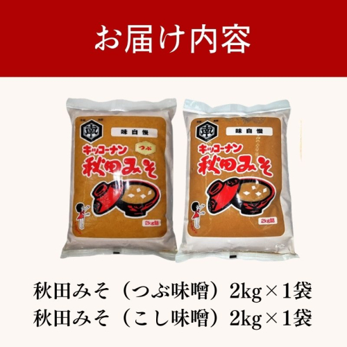 <食べ比べ>秋田みそ(つぶ・こし)各2kg×1袋 合計4kg キッコーナン  1860041 - 秋田県にかほ市