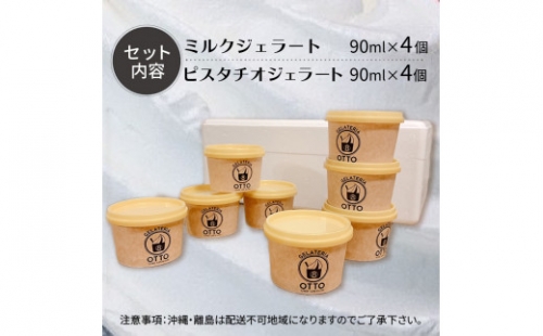- ミルクジェラート90ml×4ケ、ピスタチオジェラート90ml×4ケ