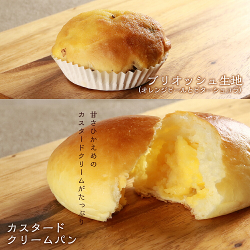 ブリオッシュ生地に甘さひかえめのカスタードクリームをたっぷり包んで焼き上げました。