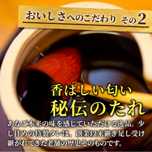 ふっくら焼きあがった天然穴子の旨味と、創業以来継ぎ足し受け継がれてきた秘伝のたれの香ばしさで、 100年以上全国で愛され続けている焼あなごをお届け。