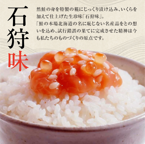 天然鮭の身を特製の糀にじっくり漬け込み、いくらを加えて仕上げた生珍味[石狩味]でした。