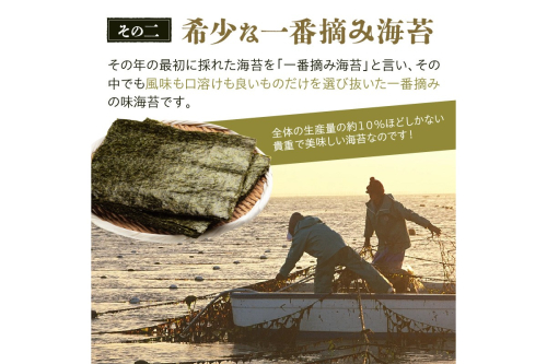 有明海で収穫した一番摘み海苔は漆黒の中に茜色のさす上等な海苔です。