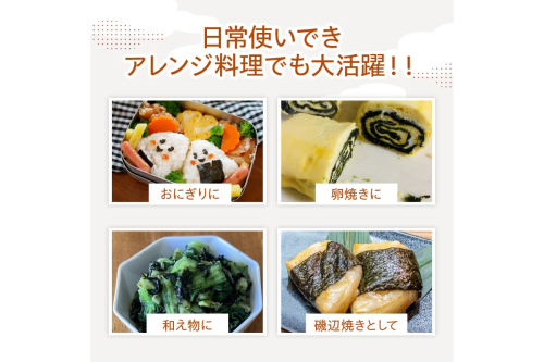 うまみと磯の香りがちょうどいいバランスで両立し、 そのまま食べても、ご飯のお供としてもご賞味ください。