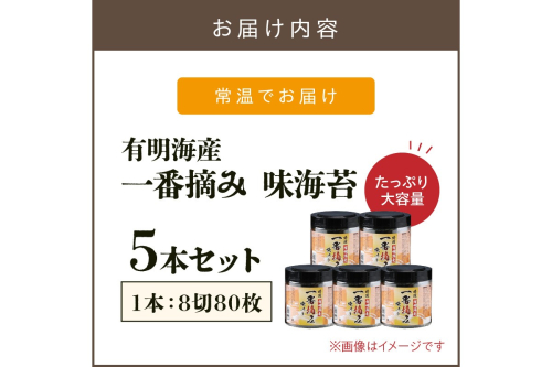 有明海産一番摘みの味海苔ボトルです。1ボトルに80枚×4本セットと大容量のお品です。