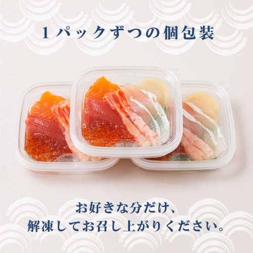 - 6種類のお刺身セット<3パック 冷凍> さしみ 刺し身 刺身セット 海鮮丼セット 海鮮丼の具 盛り合わせセット 小分け サーモン マグロ イクラ ホタテ 甘エビ 海鮮丼 手巻き寿司調理済み 一人暮らし セット おかず 魚介類 海鮮 絶品 人気 ヒロセ 北海道 釧路町 釧路超 特産品