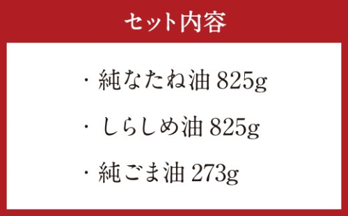 純なたね油 825g しらしめ油 825g 純ごま油 273g 3本セット 195393 - 熊本県益城町