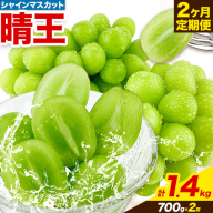 商品情報:シャインマスカット晴王 名称:シャインマスカット 内容量:以下よりお選びください ・約600g(1房)×2回お届け ・約700g(1房)×2回お届け ・約1.2kg(約600g×2房)×2回お届け ・約1.4kg(約700g×2房)×2回お届け 配送方法:冷蔵便でお届けします。 提供元:彩美菜果 ※画像はイメージです。 地場産品基準 告示第5条第8ハ号に適合 適合理由:岡山県 認定地域資源:ぶどう