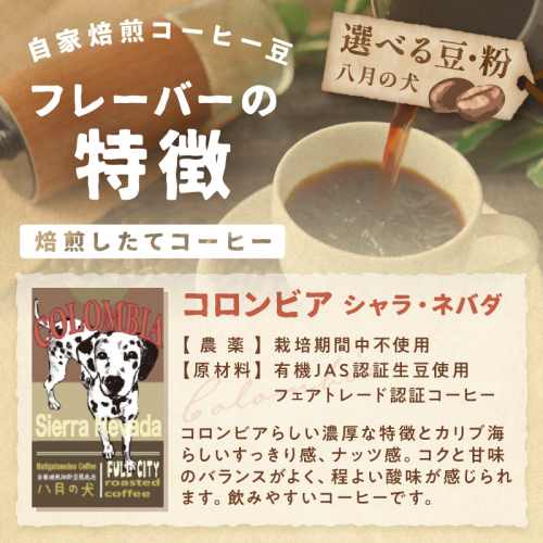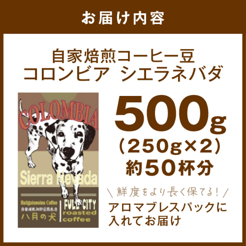 【栽培期間中農薬不使用】自家焙煎コーヒー豆 コロンビア シエラネバダ 500g(250g×2) 約50杯分 小分け 豆・粉 選べる