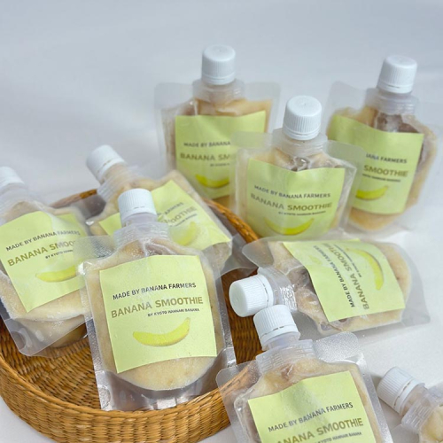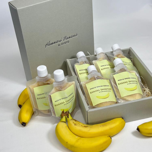京都府亀岡市産の皮ごと食べられる稀少なバナナ『京都はんなりばなな』を皮ごとたっぷり使用したパウチスムージーBOXです。栽培期間中農薬不使用のバナナを皮ごと使用することにより、栄養価も豊富で健康にも優しく、また芳醇な香り・味わいをより感じていただける一品となっています。鮮度をそのままとじこめて冷凍でお届けします。パウチだから手軽な朝食や軽食にお召し上がれます。大切な方へのギフトにもピッタリです。
