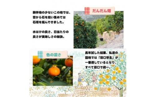 樹上熟成させたみかんを収穫後、数日間さらに追熟させ風味豊かなまろやか味に仕上げた食味の良いみかんです。