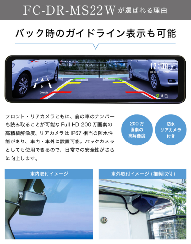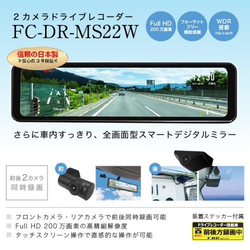 - FC-DR-MS22W 200万画素 2カメラドライブレコーダー(取付工賃込み):1本体