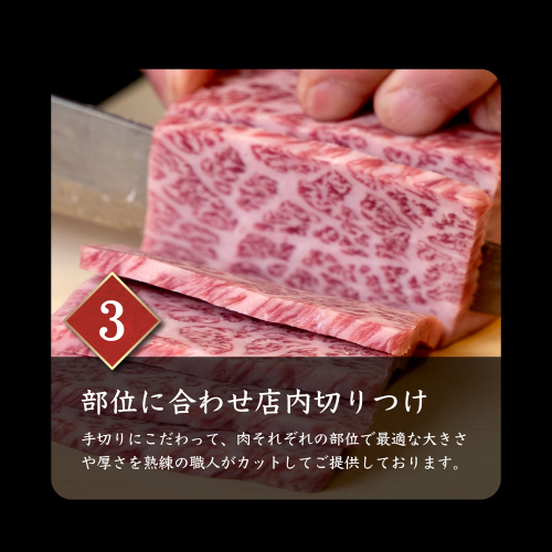 北海道産の黒毛和牛A5ランク上カルビの中からカイノミ・フランク・ヘッドバラの3種類をご用意させていただきました。