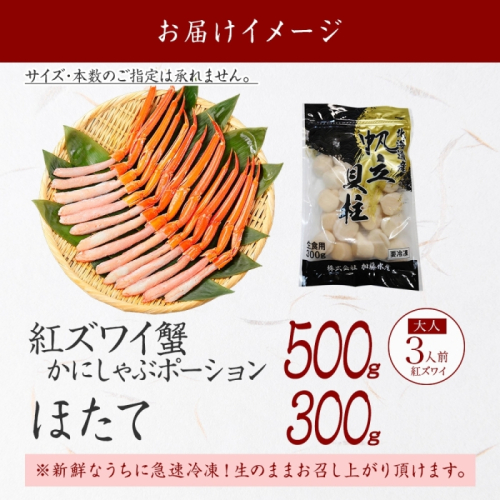 3293. 紅ズワイガニ ポーション 500g ホタテ 300g セット 紅ズワイ 紅ズワイ蟹 紅ずわいがに カニ かに 蟹 ほたて 生ほたて 帆立 海鮮 海鮮丼 しゃぶしゃぶ 北海道 弟子屈町
