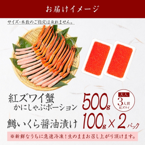 - 3294. 紅ズワイガニ ポーション 500g 鱒いくら醤油漬け 200g セット 紅ズワイ 紅ズワイ蟹 紅ずわいがに カニ かに 蟹 鱒 イクラ いくら 醤油漬け 海鮮 海鮮丼 北海道 弟子屈町