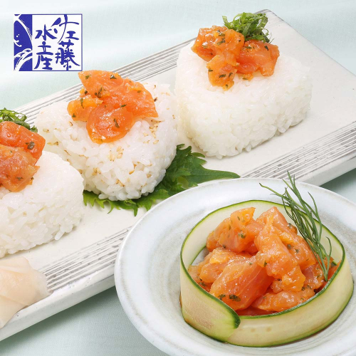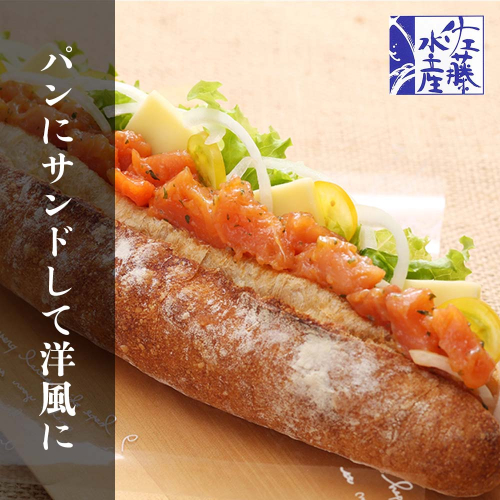 一般的な塩辛感覚の生珍味とはちがい、若い世代、お子様にも北海道産の鮭をたくさん味わっていただきたく開発した、パンに良く合う珍味です。