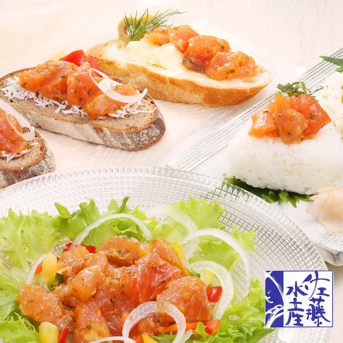 【パンに良く合う!新感覚の洋風珍味サーモンオリーブ】 北海道産の新鮮な鮭をスモークの香る珍味に仕上げ、オリーブ油で和えた新感覚の鮭の洋風味の珍味サーモンオリーブ。  一般的な塩辛感覚の生珍味とはちがい、若い世代、お子様にも北海道産の鮭をたくさん味わっていただきたく開発した、パンに良く合う珍味です。 召しあがり方は、パンにサンドしたり、生野菜たっぷりのサラダにのせたり、冷製パスタに和えたり等、洋風メニューにぴったりの新発想の珍味。 もちろんご飯にも良く合います! 保存に便利な「130gの小分け包装」でお届けいたします。 化粧箱入りなので贈りものにも最適です。