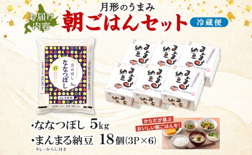 - 北海道 月形 のうまみ 朝ごはんセット まんまる 納豆 18個 ななつぼし 5kg お米 保存料不使用 安心 安全 手作業 美味しい 大粒 タレ付 からし付 お取り寄せ 送料無料 エーコープつきがた 月形町