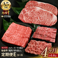 【毎月定期便】「A5仙台牛Iコース」 ステーキ・焼肉・すき焼き・切り落とし 全5回【04301-0864】