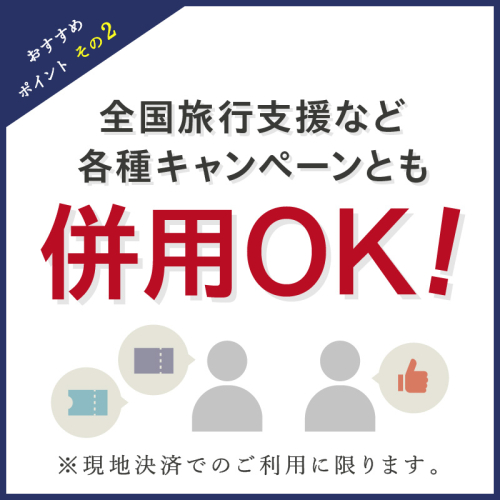 ※複数種類のクーポン等を組み合わせる場合でも、ご利用いただける上限額はお1人1泊あたり50,000円分までとなりますのでご注意ください。