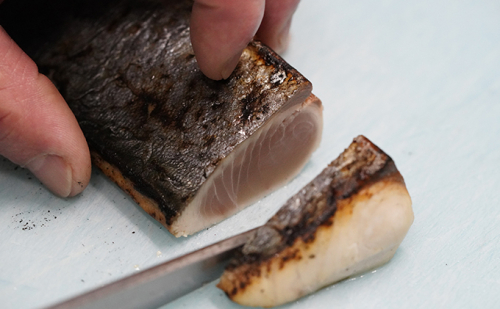 「さわらのたたき」をお召し上り頂いたお客様からは、「また食べたい、送ってほしい」というご要望を多く頂いておりました。試作の日々を重ねながら誕生した「さわらのたたき」はお客様に絶品!と言って頂ける大好評の看板商品です。他店の商品は冷凍が多いですが、当店では冷凍せず冷蔵にてお届けしますので、格段に味に違いが出ます。