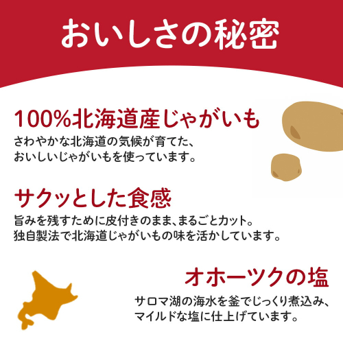 内容量を確認せずに頼んだのですが箱を開けたら小さい袋に入ったじゃがポックルが!!!内容量は少ないですが食べたらあまりの美味しさにびっくりしました。美味しいジャガイモを感じれます。近くのお店で売ってないのが残念です。リピ確定です。