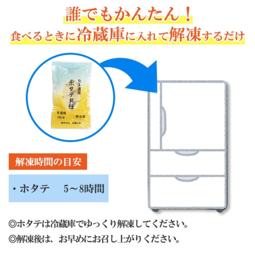 新鮮なうちに急速冷凍しているため、プリプリとしており、ほたて本来の上品な甘みと旨みが味わえます。