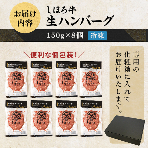 - 北海道 しほろ牛 ハンバーグ 150g×8個 牛 赤身肉 国産牛 肉 ビーフ セット 国産 冷凍 詰合せ お取り寄せ 送料無料 十勝 士幌町【N02】