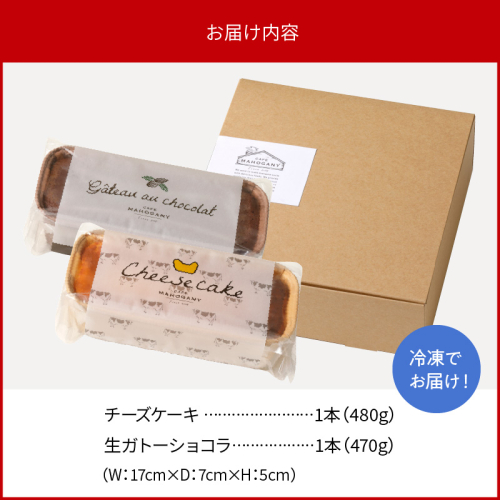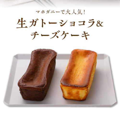 マホガニーで大人気の生ガトーショコラとチーズケーキが一度に楽しめるセットです。