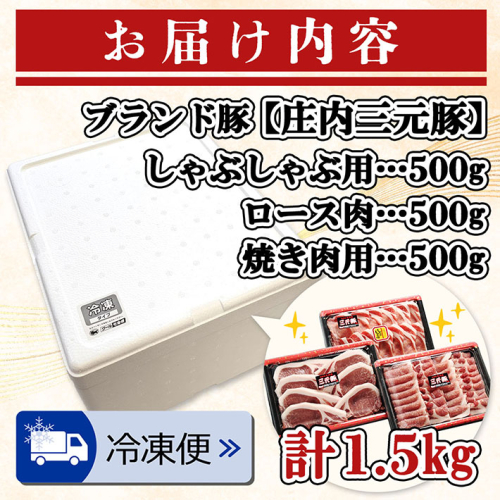 【109-021】ブランド豚「庄内三元豚」3点セット(計1.5kg)