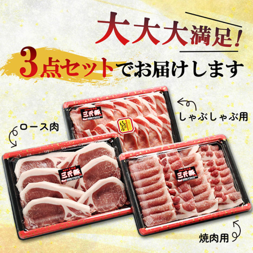 全国屈指のブランド豚『庄内三元豚』。様々な調理方法で贅沢に食べ比べてください! しゃぶしゃぶ用・ロース・焼肉用 各500gのセット。