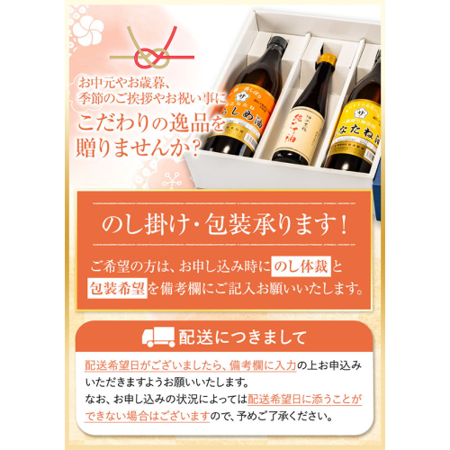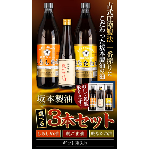商品情報:坂本製油 選べる3本セット【ギフト箱入り】